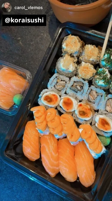 Entregaram dentro do prazo e o sushi é delicioso! Vou pedir mais loguinhoo